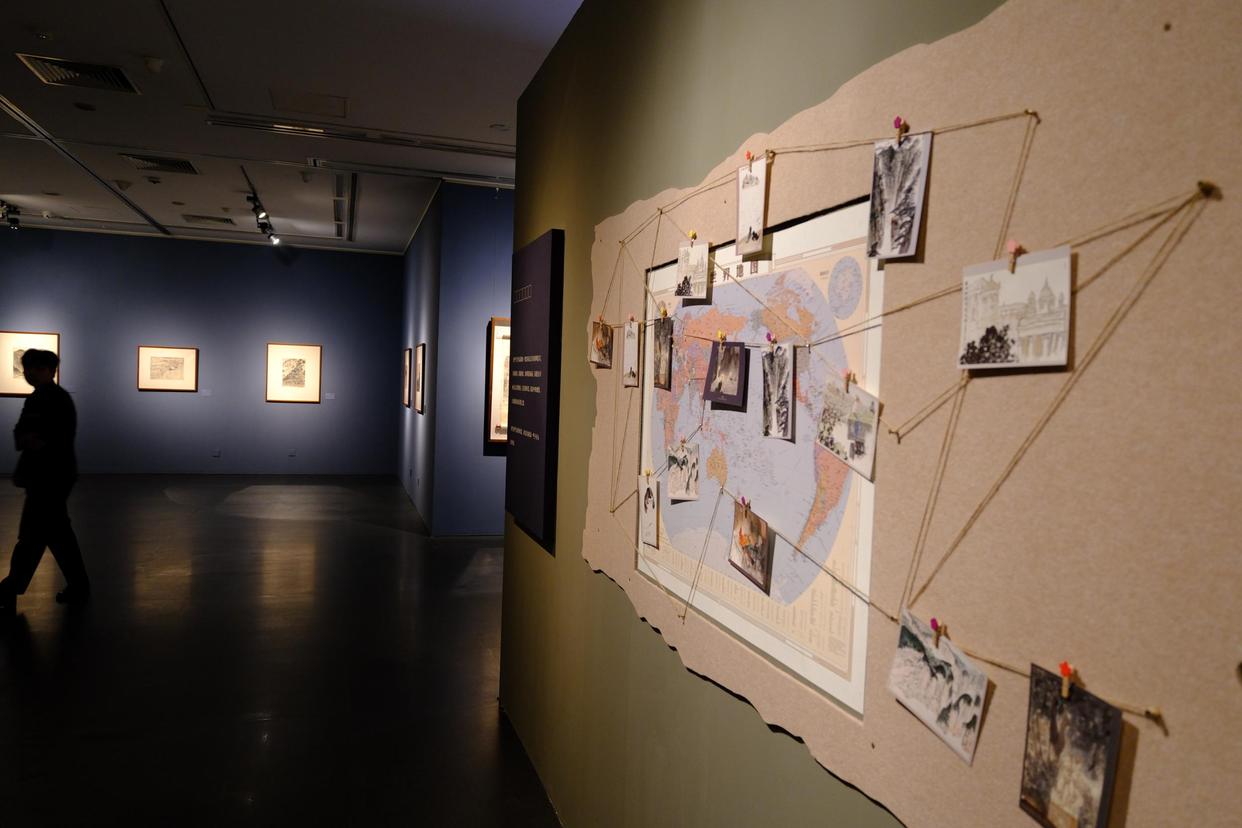 展览现场。北京日报客户端记者 王广燕摄1953年,30岁的亚明跟随中苏友好代表团首次迈出国门。此后四十余年,他走过了近20个国家,创作写生作品600多件。这些以毛笔绘制的写生创作扎根于民族土壤,既坚持了对传统中国画笔墨与精神的追求,同时也展现出他对东西方绘画规律的研究。亚明曾谈到,不同地域、不同国度的山川气质与风情神采,皆出自一管毛笔之下——这正说明,所谓“中国传统绘画有国度局限”的说法并不成立。
